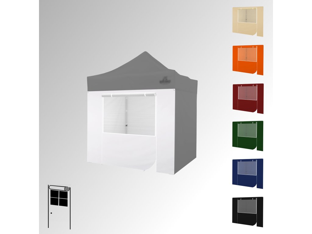 Offre diverse opzioni in una sola soluzione: ingresso, finestra in PVC o chiusura come parete fissa, rendendola una soluzione flessibile per vari eventi.